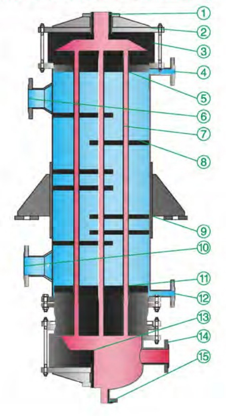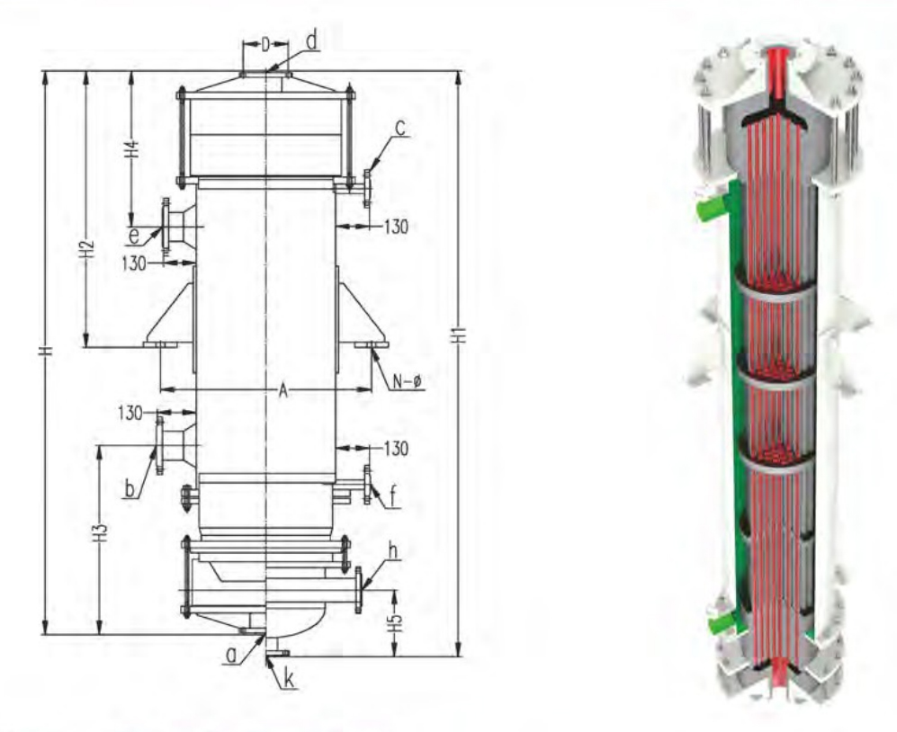 يُعدّ مبادل حراري GH المصنوع من الجرافيت ذي الرأس العائم، والمُكوّن من غلاف وأنبوب، جهازًا فعالًا وموثوقًا للغاية لنقل الحرارة. يتكون من أنابيب، ورأس عائم، وغلاف، وأجزاء أخرى.